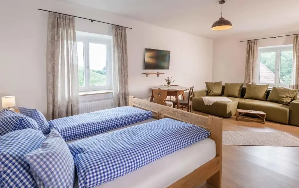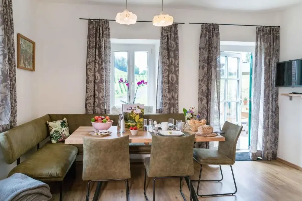 关于 Weingarthaus 的更多信息位于奥地利施蒂利亚州的魏因古特客房(Pongratzweg 1,8462加姆利茨)是一处安静而舒适的民宿,距离当地中心和多个景点都非常便捷。这里以宁静、原始风格著称,周边环境优美宜人。酒庄式设计让住客能够感受到乡村生活的真实与质朴——无论是清晨醒来时远眺田野还是傍晚品尝自家酿造的葡萄酒,都是难得体验。早餐更备受好评,材料新鲜且口味纯正,满足不同口味需求。民宿提供两间可容纳家族入住的套房,配有独立服务,方便用餐或休闲;此外还有小型吧台供应饮品。免费停车场为前往附近旅游带来极大便利。距离最近的居民区仅300米外就是Tinnauer村落,步行即达;而莱布尼兹市中心、卡普西内尔修道院等热门景点均在6公里左右范围内,开车约10分钟即可抵达。埃伦豪森城堡(5公里)、维拉别墅(8公里)以及博物馆Flavia Solva(6公里)也是常见目的地之一。冬季则可选择22公里外的Radvanje滑雪缆车或Poh