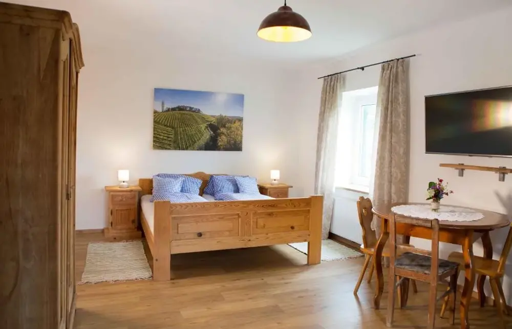 关于 Weingut-Gästezimmer Pongratz 的更多信息位于奥地利加姆利茨(Gamlitz)的克拉纳赫76号客栈(Kellerstöckl Kranach 76),坐落在安静的乡村环境中,周边散布着多处葡萄园和历史建筑。房间设计温馨舒适,配备了小型私人花园和露台,让您能够享受户外阳光与宁静氛围。室内还包含一个木制浴缸式桑拿房(Weinlaube),是放松身心的绝佳选择之一。此外,屋内有壁炉可供取暖,特别适合秋冬季节后归来、休憩片刻或观赏夜景时使用。附近距离著名的彼得·斯科夫酒庄(Peter Skoff)仅2公里左右,还有汉尼斯·萨巴蒂酒庄(Hannes Sabathi Weingut)更是在1.
